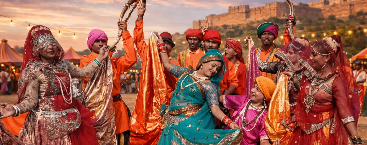 घूँघट और रूमाल, दोनों मुगल काल की सौगात हैं और इस लोकनृत्य के अनिवार्य अंग बन गये थे, पर अब मुख से घूँघट हट गया है और मुख में अंकित भावों की अभिव्यक्ति के लिए रास्ता खुल गया है। भारतीय नृत्यों में मुखाभिव्यक्ति का विशेष महत्व है। मुगल काल में अपहरण के भय से घूँघट अनिवार्य हो गया था। वर्तमान में लोकनृत्यों में निहित कलात्मकता का महत्व बढ़ा और मुख से घूँघट हट गया।