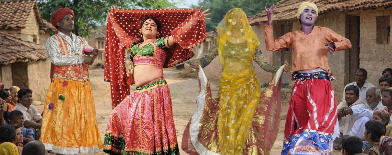 बेड़िनी सराई (चुस्त चूड़ीदार पैजामा) पर बीस हाथ का सौ चुन्नटोंवाला घाँघरा या लहँगा और अँगिया या चोली पर चुनरिया या साड़ी पहने, आँखों में कानों की ओर बढ़ती काजल-रेखा, भौहों से कनपटी तक रंगीन टिपकियाँ सजाये और अधरों पर पान की लाली रचाये जब उतरती है, तो दर्शकों की निगाहें वहीं ठहरी रहती हैं।
