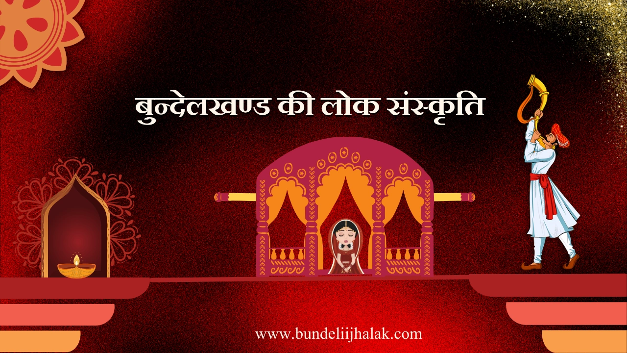 लोकजीवन के संस्कार, उनकी मान्यतायें, लोकाचरण, लोकधर्म, लोकसाहित्य, लोकसंगीत इनका समन्वित रूप ही ‘लोक संस्कृति’ कहलाती है। बुन्देलखण्ड की लोक संस्कृति Bundelkhand Ki Lok Sanskriti बहुत प्राचीन है। उसमें अनार्य तथा आर्य , दोनों ही संस्कृतियों के जीवन-मूल्यों का समन्वय हुआ है। विशेषता यही है कि उन दोनों संस्कृतियों को आत्मसात कर बुन्देलखण्ड की लोक संस्कृति ने एक निजता बना ली है।